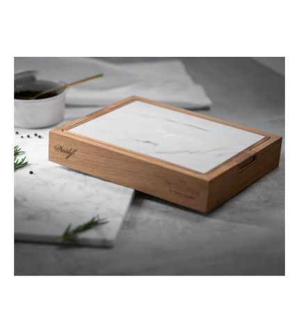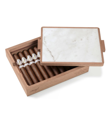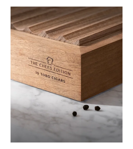 A Toro cigar inspired and created by the finest palates of the world, Davidoff collaborated with five chefs with a total of eleven Michelin stars to create something truly unique. The fourth edition of this highly acclaimed series with its kitchen-inspired packaging is a true collector’s item and sought after by aficionados. The box has an integrated kitchen cutting board that doubles as a cigar rest. Limited to 17,500 boxes worldwide. Size: Toro 6 ¼ x 52. Medium Strength.
