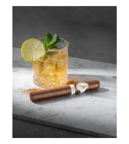 The warm spice of a Virgin Moscow Mule – vibrant ginger, sweet cinnamon honey, and bright citrus – intertwines beautifully with the cigar’s complexity. Floral and creamy notes bloom on the palate, accented by hints of cayenne and coffee. The Mule’s zesty lime and aromatic orange bitters cut through earthy oak and leather tones, while the smooth honeyed sweetness softens the smoke’s intensity. A perfect balance of spice, warmth, and refreshing contrast.