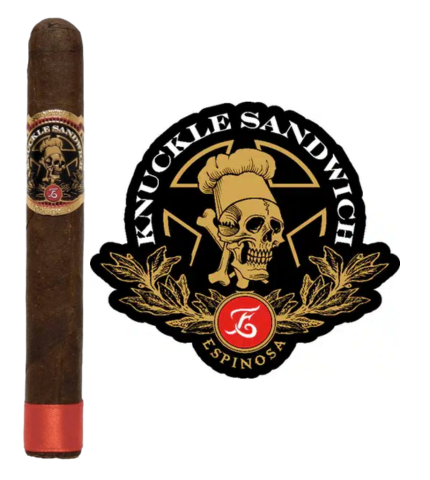 The Knuckle Sandwich Maduro Robusto is a bold, flavourful premium cigar born from the collaboration between Guy Fieri (Diners, Drive-Ins and Dives) and Erik Espinosa of Espinosa Premium Cigars. Measuring 5 inches by a 52 ring gauge, this robusto showcases a rich, dark Ecuadorian Sumatra Maduro wrapper that glistens with oils, offering an inviting first impression. Beneath the wrapper lies a Nicaraguan binder and a blend of meticulously selected Nicaraguan fillers, delivering a well-balanced yet powerful profile.