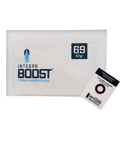 Use 67-gram Integra Boost 2-way humidity control packs to control moisture in an enclosed area. The patented technology will either release or absorb moisture, maintaining relative humidity at 69% in a contained environment.