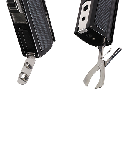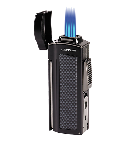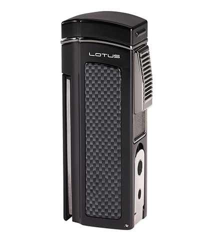 The Lotus Dominator Black Cigar Lighter is another large cigar lighter from Lotus. This cigar torch is big enough to serve as a table top cigar lighter, but it could also fit in a large pocket. It has lots of features: