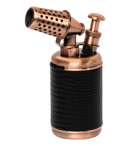 The Lotus Truman Copper and Black Single Torch Table Lighter is a large and hefty piece of cigar lighting equipment. This sturdy table lighter has a single wind-resistant torch flame guaranteed to toast your cigars in seconds. A mirror on the underside of the lid helps you see if the foot of your cigar is evenly lit, and the extra-large tank means that you don’t need to constantly refill your lighter with butane, saving you valuable time that can be used enjoying your smokes! Lighter Size: 10cm x 6.4cm x 3.8cm (4” x 2.5” x 1.5”) Gift Box Size: 14.5cm x 8.3cm x 5cm (5.75″ x 3.25″ x 2″)