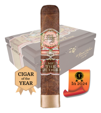WINNER! Number One Cigar in 2024 awarded by Cigar Aficionado! The My Father brand is already known for its impeccable craftsmanship and exquisite flavour profiles, and the The Judge Grand Robusto simply takes that reputation and runs with it! Featuring a bold, medium/full-bodied blend consisting of an Ecuadorian Sumatra wrapper draped over Nicaraguan binder and filler tobaccos, this full-bodied large gauge robusto is potent and absolutely bursting with flavour, giving this premium Nicaraguan smoke the power to rule over any opposition with deep, dominant notes of wood, leather, and spice. Size: 5 x 60 Box Pressed. Note: these are now beginning to ship in plain packaging.