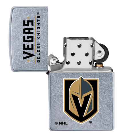 A true hockey fan will make room on the memorabilia shelf for this Zippo NHL lighter. Show your team spirit with this official NHL Zippo windproof lighter. The design features the Knight’s logo, which is colour imaged on a rugged Street Chrome finish. Comes packaged in a gift box. For optimal performance, fill with Zippo lighter fuel.