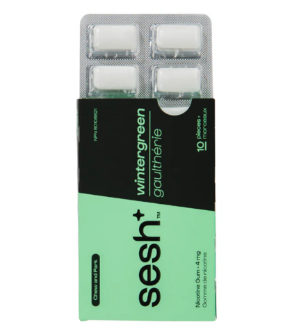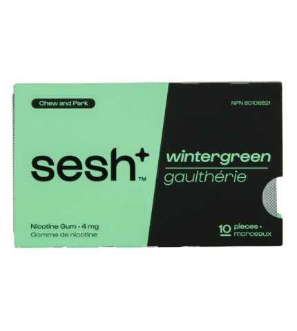 It’s the breath of fresh air you deserve when you’re stressed. Take your mouth on a journey to the great outdoors with Wintergreen Sesh. Enjoy Sesh Nicotine Gum throughout the day when you get the urge to smoke to reduce withdrawal symptoms and cravings. Alternatively, if you are stuck in a situation where you won’t be able to smoke for a time (extended meeting, flight, car ride, etc.) then Nicotine Gum can help take the edge off. Available in Wintergreen flavour, each pack contains 10 pieces of gum, each gum piece containing 4 mg of nicotine.
